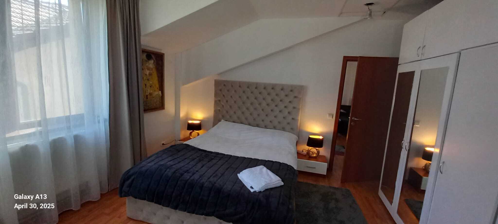 Un apartament atipic situat la ultimul etaj, cu living foarte mare si bucătărie deschisă. Dormitor cu un pat de 160x200. Terasă de unde puteți vedea niște apusuri de soare superbe și orașul